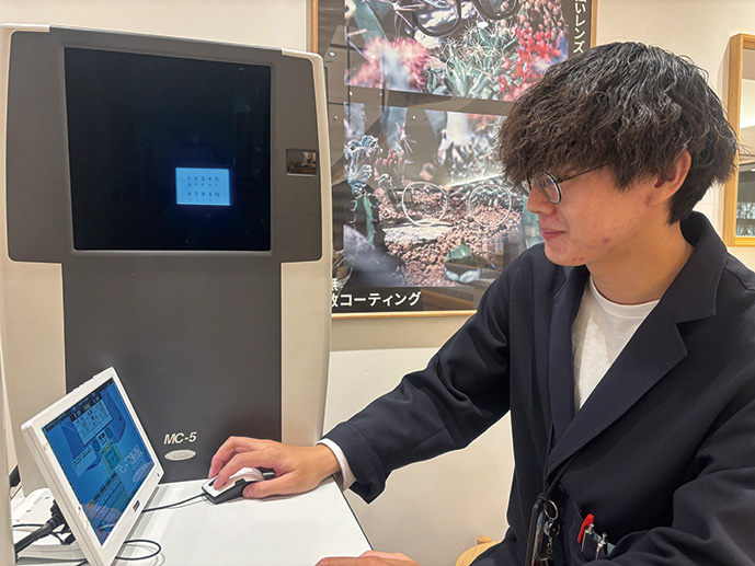 アプリを使ったAI診断をベースにメガネを提案し、視力検査を行います。