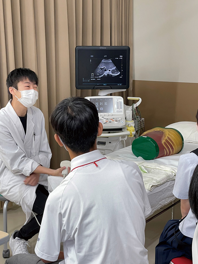 科学の力で手の汚れを調べたり、超音波で体の中を観察したり、赤外線で血管を映し出す医療検査を体験します。